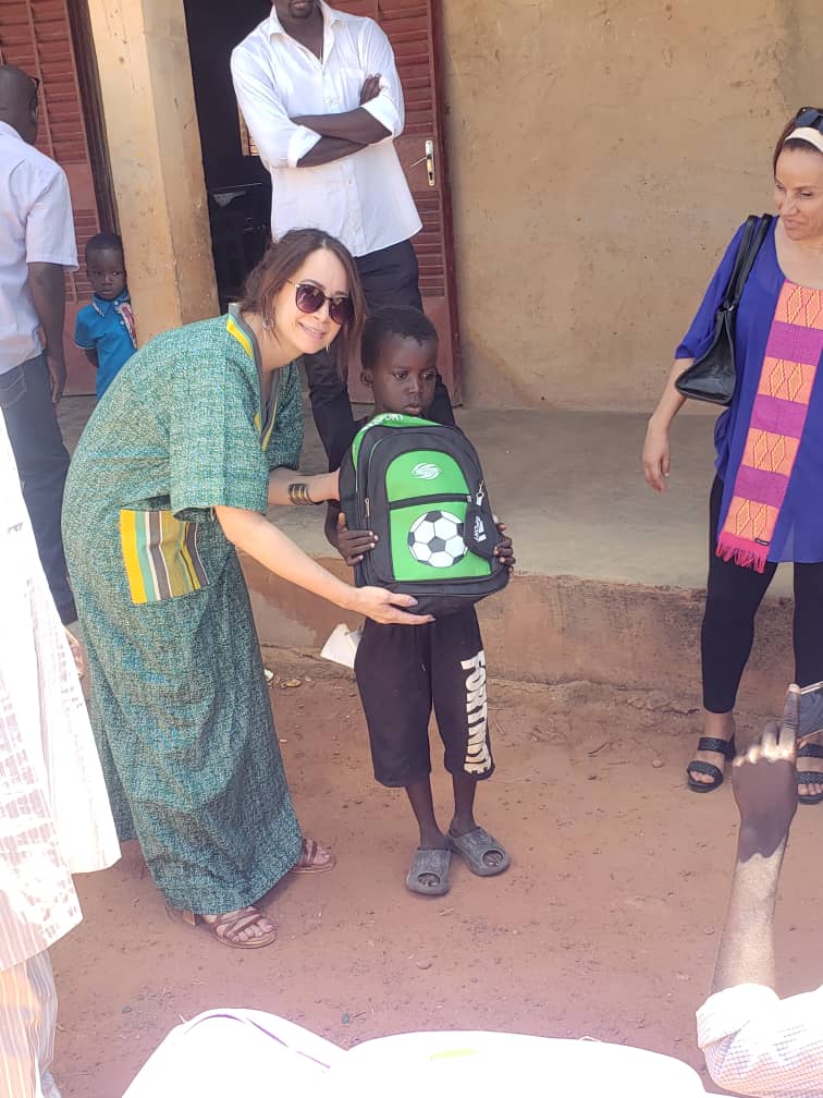 Mme l'Ambassadrice remet un kit solaire à un élève